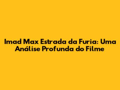 Imad Max Estrada Da Furia: Uma Análise Profunda Do Filme