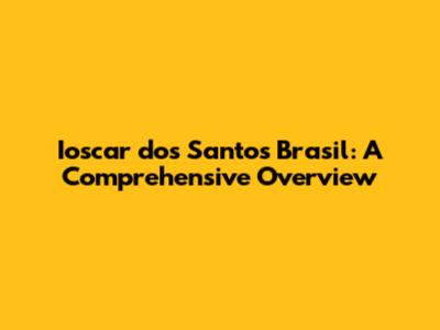 Ioscar Dos Santos Brasil: A Comprehensive Overview